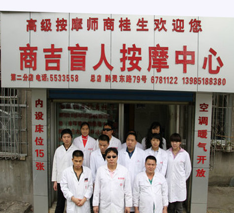 贵阳市商吉按摩中心成立于2002年,为方便和满足广大顾客的要求,下设5个分店,现有床位60余张,初、中、高级按摩师、医士、主治医师共80余名。为顾客提供方便、快捷的服务。在技术方面经过专业培训,并取得各级资格证后,由毕业于北京联合大学针灸推拿专业、现任中国针灸推拿协会理事、贵州省盲协副主席、主治医师/高级按摩师的商桂生老师亲自授教,通过长期理论与临床的结合实践,做到给患者解除疲劳和病痛,经按摩后治愈的患者不计其数。 本中心负责人商桂生,高中毕业后因双目失明,克服困难,刻苦钻研考入贵阳市第一期盲人按摩培训班,进行为期近2年的专业按摩知识学习,并师从贵州省按摩界权威蒋家鼐,研究临床上层次更深的理论,以优异成绩完成学业。此后被广东一集团公司高薪聘请为专职按摩医师,在广东的6年间,商桂生克服了常人难以想象的困难,除进一步提高专业水平外,还熟练的掌握了计算机的应用。后来又考入北京联合大学针灸推拿专业,同样以优异的成绩完成学业。2002年回到贵阳后,在省、市、区各级残联的大力扶持下创办了贵阳市商吉盲人按摩中心,至今解决了80多名残疾人就业..