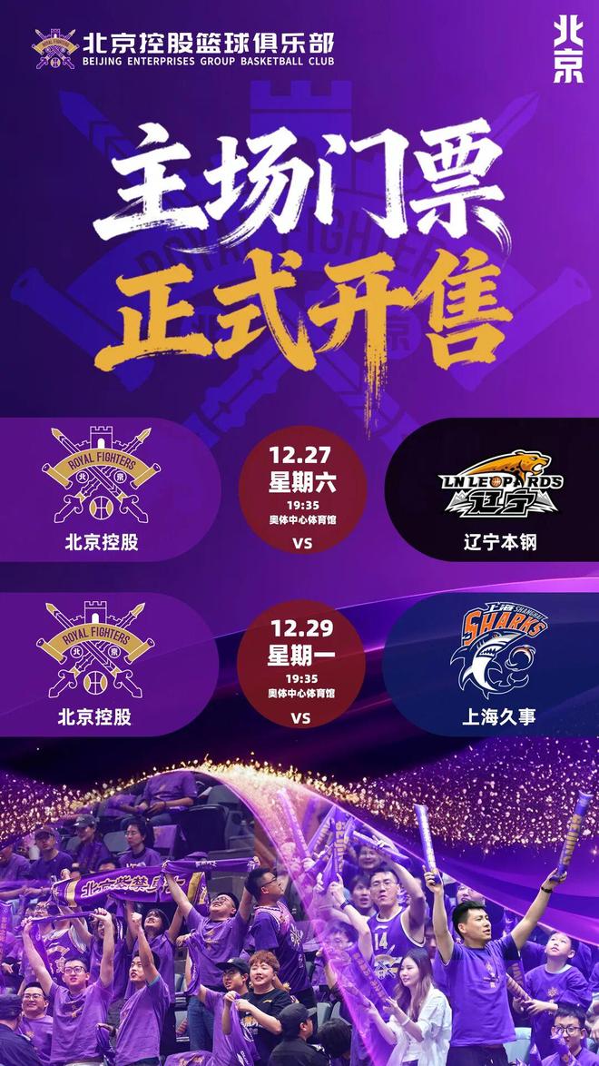【票务公告】主场对阵辽宁和上海比赛将于12月20日中午12:18开票